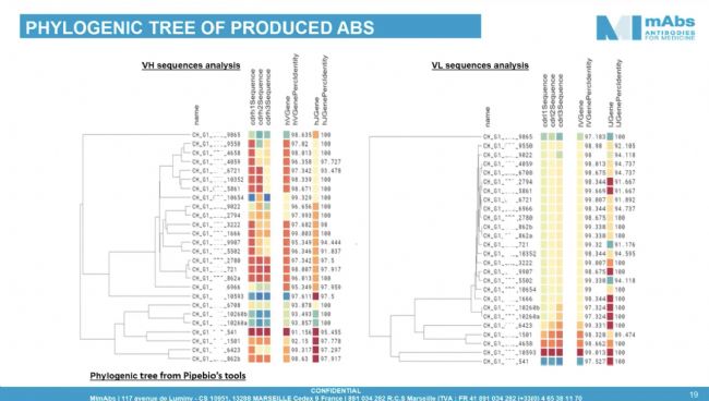 被Beacon®篩選出來的陽性hits的VH和VL序列顯示出多樣性(圖5),前期發(fā)現(xiàn)抗體的多樣性為后續(xù)的選擇和開發(fā)提供了豐富的資源。