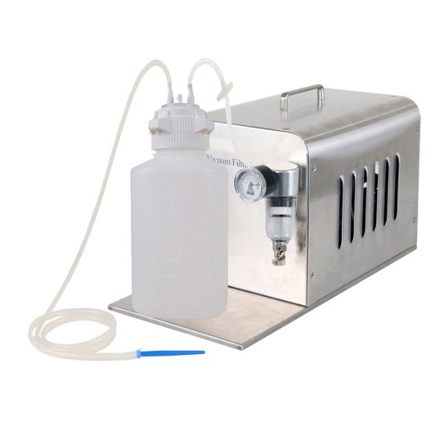 實驗室廢液吸取裝置顧名思義,是一種抽取、吸引實驗后需要廢棄的液體、容器內(nèi)上清液、或者其他需要被抽走提取的液體的專門設(shè)備。其基本的原理是依靠一臺真空泵產(chǎn)生吸力,通過吸力將待抽取的液體吸入集液瓶內(nèi)。該設(shè)備在實驗室中有較為廣泛的用途,例如抽取離心管內(nèi)的上清液、更安全的抽走有機溶劑或者腐蝕性液體等等。而在細(xì)胞房內(nèi)廢液吸取裝置也有著相當(dāng)重要的作用——抽吸細(xì)胞培養(yǎng)后的上清廢液。