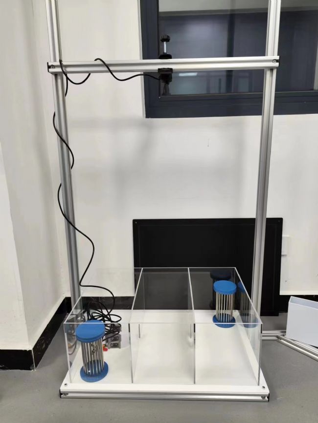 適應階段:將小鼠置于一個用兩個隔板隔成三等分的箱子中,通常箱子的規(guī)格是 40cm寬*60cm長*22cm高,每個隔間 40cm寬*20cm長*22cm高,兩個隔間之間有個可以打開或者關閉的小門,可供小鼠穿梭探索。