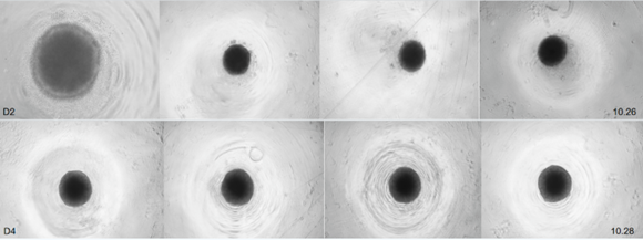 Day 2~Day 4EB(擬胚體)的形成:將種子細胞接種至NEST超低吸附U底培養(yǎng)板培養(yǎng)至出現(xiàn)圓形和光滑邊緣。
