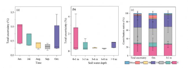 (a)量化每個(gè)不確定性成分對(duì)總不確定性的貢獻(xiàn),以確定影響植物水源分配準(zhǔn)確性的主導(dǎo)因素;