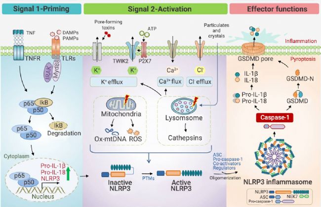 NLRP3 炎癥小體的激活經(jīng)歷三個連續(xù)的步驟:
