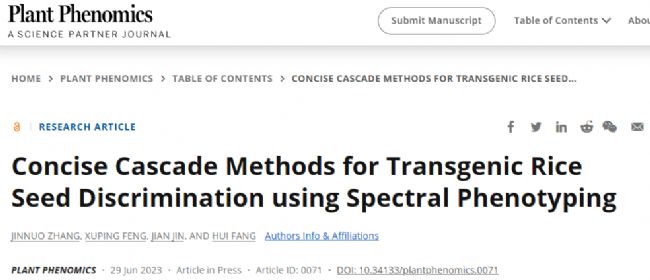 Plant Phenomics | 一種利用光譜表型分析技術(shù)鑒別轉(zhuǎn)基因水稻種子的簡明級聯(lián)方法