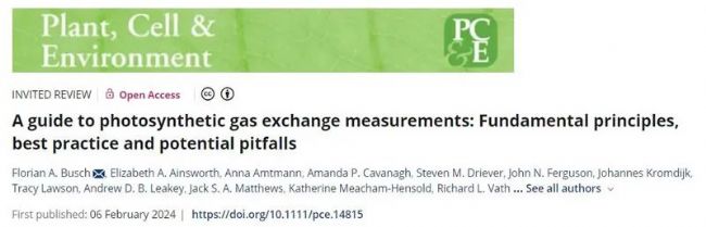 通過光合作用氣體交換測量,可以從機理上深入了解植物葉片中碳和水通量的基本過程,進而了解從單個細胞到整個生態(tài)系統(tǒng)等不同尺度的相關(guān)過程。鑒于光合作用對全球氣候討論的重要性,學(xué)界普遍認(rèn)為以下兩點需要提升:1.廣大研究人員應(yīng)對所使用實驗方法的基本原理有最基本的了解;2. 明確相關(guān)研究的最佳實踐指南和正確的數(shù)據(jù)解釋。2024年2月6日,Plant, Cell & Environment雜志刊發(fā)了英國伯明翰大學(xué)等多家單位署名的綜述文章,標(biāo)題為A guide to photosynthetic gas exchange measurements: Fundamental principles, best practice and potential pitfalls。在該綜述中,F(xiàn)lorian A. Busch等人概述了可通過氣體交換測量方法研究的光合作用生物化學(xué)和生物物理參數(shù),并就如何可靠地測量這些參數(shù)提供了逐步指導(dǎo)。此外,文章還提供了使用氣體交換設(shè)備的最佳實踐建議,并強調(diào)了實驗設(shè)計和數(shù)據(jù)解讀中可能存在的誤區(qū)。補充信息包含示例數(shù)據(jù)集、實驗方案和數(shù)據(jù)建模流程。這篇綜述是一項團隊協(xié)作的成果,旨在讓實驗研究人員和數(shù)據(jù)建模人員扎實了解氣體交換測量的理論基礎(chǔ)、不同實驗方案背后的原理以及數(shù)據(jù)解讀方法。