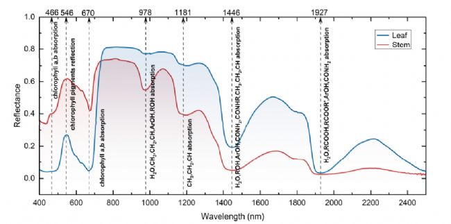 本研究所選取的葉類蔬菜用蒸餾水進(jìn)行了嚴(yán)格的清洗,以有效消除其表面雜質(zhì),并在開始光譜測量之前進(jìn)行了干燥處理。為了防止蔬菜變質(zhì),在不參與實(shí)驗(yàn)時(shí),將其儲(chǔ)存在溫度為 4°C 的冷藏裝置中。葉片和莖類樣品的反射光譜在實(shí)驗(yàn)室中通過ASD系統(tǒng)直接測量,沒有使用化學(xué)試劑和其他預(yù)處理。