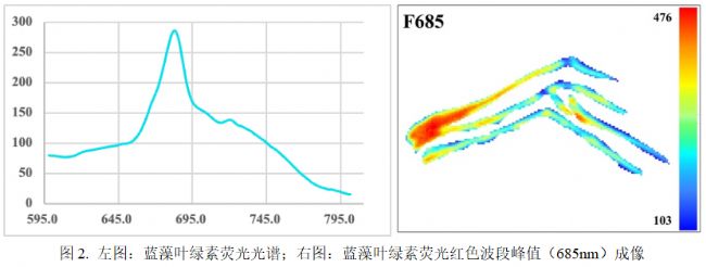下圖為藍(lán)光激發(fā)瓊脂培養(yǎng)葉綠素?zé)晒夤庾V曲線和F685葉綠素?zé)晒獬上瘛?梢钥闯,在藍(lán)色光照條件下,藍(lán)藻有一個(gè)明顯的紅色峰值F685和一個(gè)不明顯的遠(yuǎn)紅峰值F720。