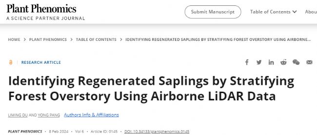 2024年2月,Plant Phenomics在線發(fā)表了中國(guó)林業(yè)科學(xué)研究院資源信息研究所和國(guó)家林業(yè)和草原局林業(yè)遙感與信息技術(shù)重點(diǎn)實(shí)驗(yàn)室合作完成的題為Identifying Regenerated Saplings by Stratifying Forest Overstory Using Airborne LiDAR Data的研究成果。