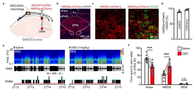 圖1:生理狀態(tài)下DRN-GAD2神經(jīng)元具有抑制覺醒的作用