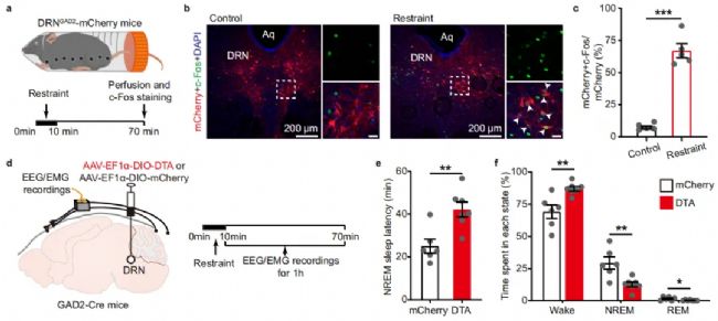 2、急性應(yīng)激狀態(tài)下DRN-GAD2神經(jīng)元具有抑制覺醒的作用