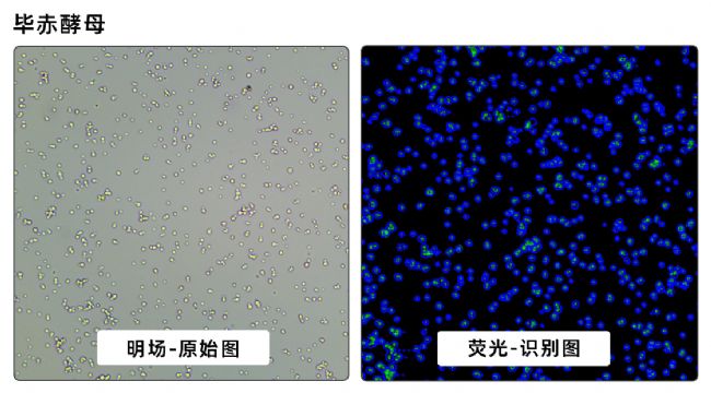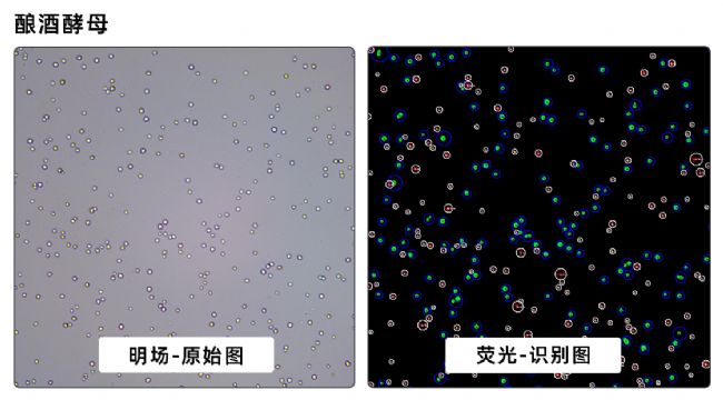 儀器配置明場+雙色熒光通道,采用熒光染色法計算活率,排除背景雜質(zhì)對目標細胞的干擾,達到高效、直觀且精準的微生物細胞計數(shù)。