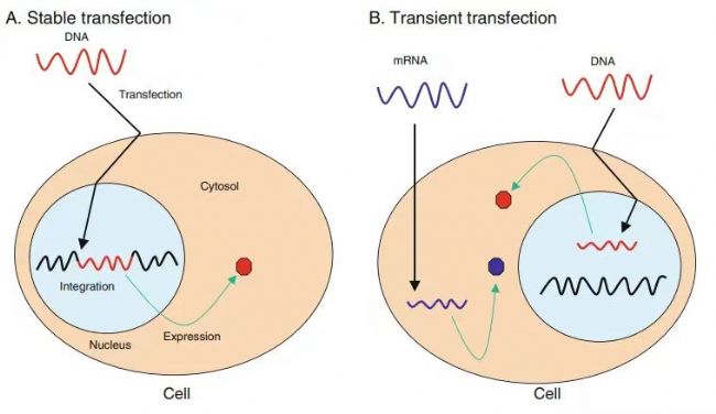 圖1 穩(wěn)定轉(zhuǎn)染與瞬時(shí)轉(zhuǎn)染的示意圖[2]