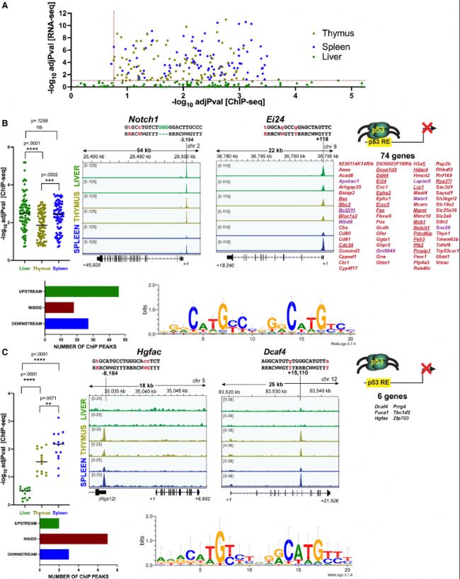 2023年03月28日,美國西奈山伊坎醫(yī)學(xué)院James J. Manfredi團(tuán)隊通過對經(jīng)輻射處理的小鼠器官進(jìn)行聯(lián)合RNA測序(RNA-seq)和染色質(zhì)免疫沉淀測序(ChIP-seq)分析,鑒定出共有的和組織特異性p53轉(zhuǎn)錄反應(yīng),揭示了胸腺和脾臟共有的p53靶點(diǎn)富含凋亡靶點(diǎn)。且肝臟不能上調(diào)這些基因并不是因?yàn)榛蛘加新式档。小鼠模型?shí)驗(yàn)表明,p53的C末端缺失可導(dǎo)致肝內(nèi)p53凋亡靶點(diǎn)的輻射誘導(dǎo)表達(dá),并伴隨細(xì)胞死亡增加。全面的RNA-seq分析顯示,C末端在肝臟特異性p53靶點(diǎn)的轉(zhuǎn)錄激活中需要發(fā)揮額外作用。作者推測,抑制凋亡基因表達(dá)和增強(qiáng)肝臟特異性靶點(diǎn)激活都會導(dǎo)致組織特異性放射抵抗。相關(guān)研究成果以“In vivo RNA-seq and ChIP-seq analyses show an obligatory role for the C terminus of p53 in conferring tissue-specific radiation sensitivity”為題發(fā)表在《Cell Reports》期刊(IF 8.8)。