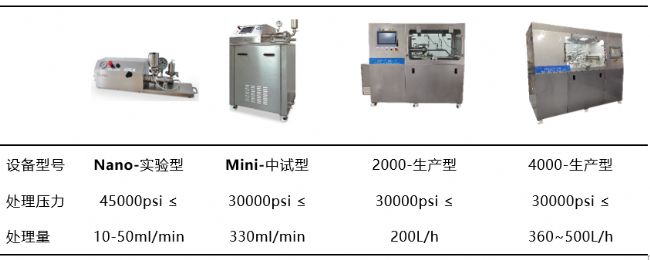 本次測試使用兩種型號的NOOZLE微射流均質(zhì)機,包括小試型Nano和中試型Mini,從小試型Nano的參數(shù)摸索到中試型Mini的參數(shù)放大都可以重現(xiàn),達到客戶預期效果。