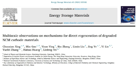 獲獎(jiǎng)?wù)撐模篗ultiscale observations on mechanisms for direct regeneration of degraded NCM cathode materials (對(duì)退化NCM 正極材料直接再生機(jī)制的多尺度觀察)
