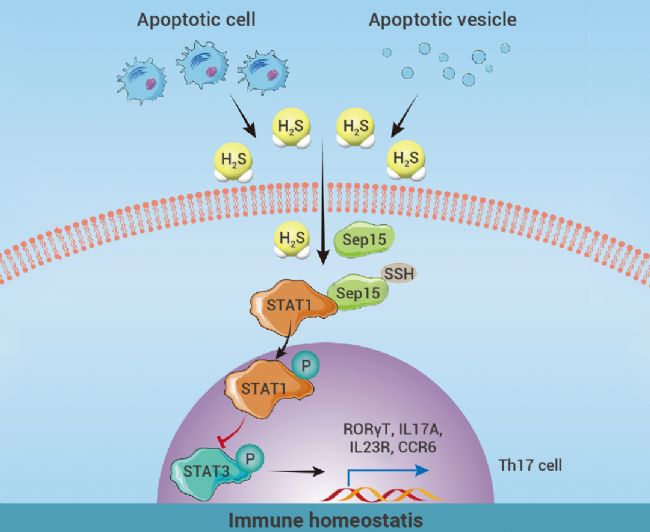 圖 1. 細(xì)胞凋亡釋放 H2S 氣體抑制 Th17 細(xì)胞分化[1]。