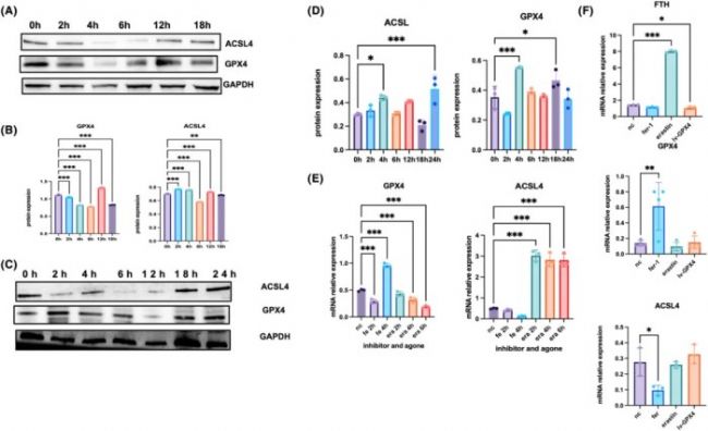 首先,HE 和 Masson 染色顯示,在成骨細(xì)胞壓力側(cè)細(xì)胞形態(tài)收縮,死亡增加。對(duì)小鼠前成骨細(xì)胞 MC3T3 在體外施加壓縮負(fù)荷(1 g/cm2),免疫組化染色顯示,GPX4 水平急劇下降,但這被鐵死亡抑制劑 fer-1 逆轉(zhuǎn)。