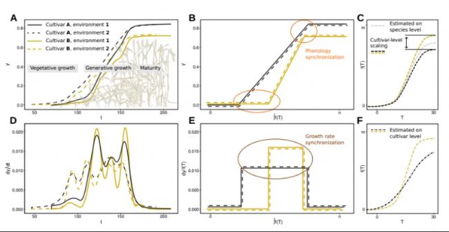 預(yù)測(cè)植物的生長(zhǎng)發(fā)育是植物生理學(xué)中一個(gè)長(zhǎng)期的目標(biāo),它涉及兩個(gè)相互交織的組成部分:連續(xù)生長(zhǎng)和生長(zhǎng)階段的進(jìn)展(即物候?qū)W)。作物生長(zhǎng)模型作為分析和預(yù)測(cè)植物生長(zhǎng)的多功能工具,在生物學(xué)的真實(shí)性和模型的簡(jiǎn)潔性之間需要做出平衡。常見(jiàn)的建模方法是對(duì)時(shí)間進(jìn)行溫度補(bǔ)償,從而使用基于物種特異性的固有溫度生長(zhǎng)響應(yīng)來(lái)“線性化”持續(xù)生長(zhǎng)和物候期,但是也有證據(jù)表明物候與品種特異性的溫度響應(yīng)有關(guān)。
