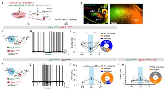 圖1:aBLA和pBLA輸入反向調(diào)節(jié)adBNST的神經(jīng)元活性