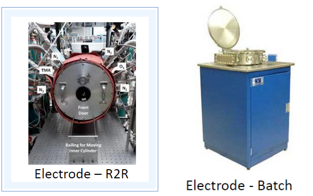 電極極片的卷對(duì)卷設(shè)備(左)以及傳統(tǒng)的批次片對(duì)片式 ALD 設(shè)備(右)