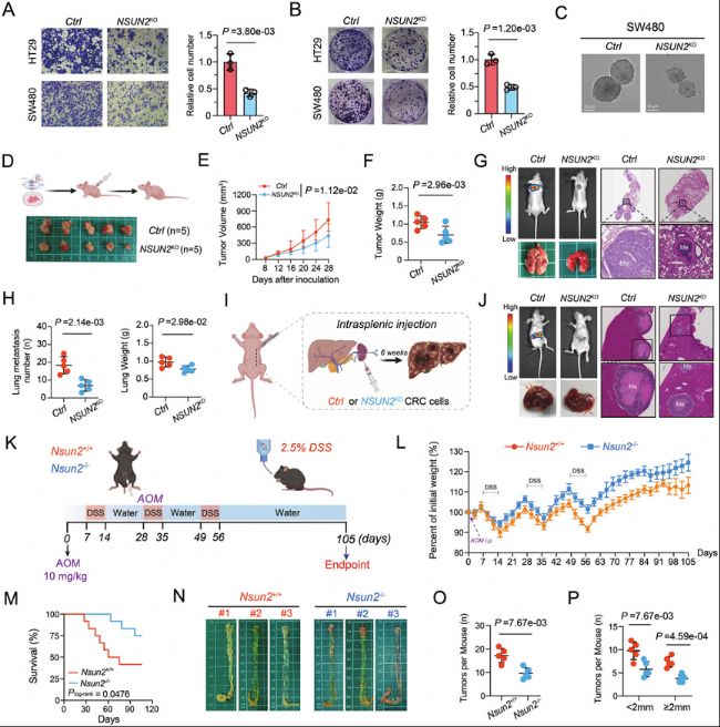 N. AOM/DSS誘導(dǎo)的原位CRC模型中Nsun2+/+和Nsun2-/-小鼠的結(jié)腸腫瘤代表性圖像。