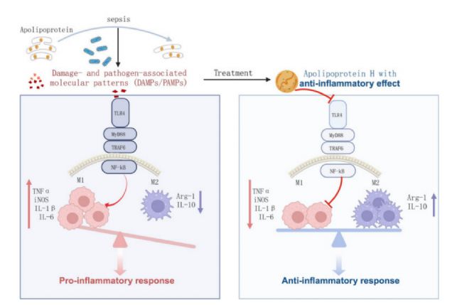 綜上所述,這些研究結(jié)果表明,APOH能通過(guò)重塑巨噬細(xì)胞極性和抑制TLR4/NF-κB信號(hào)通路的胞內(nèi)激活,從而在膿毒癥中發(fā)揮保護(hù)作用。該研究為攻克膿毒癥提供了一種新策略。