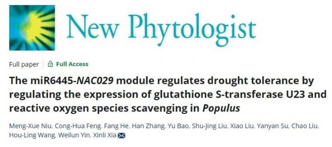 2024年3月6日,林木遺傳育種全國重點(diǎn)實(shí)驗(yàn)室、北京林業(yè)大學(xué)生物科學(xué)與技術(shù)學(xué)院尹偉倫與夏新莉教授課題組在New Phytologist(中科院一區(qū),影響因子9.4)期刊發(fā)表了題為“The miR6445-