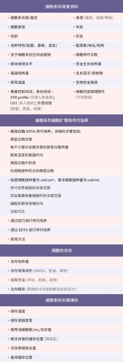 表 1. 需要記錄與細(xì)胞系有關(guān)的信息[1]。