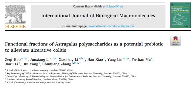 近日,蘭州大學(xué)生命科學(xué)學(xué)院張春江教授團(tuán)隊(duì)在探究黃芪多糖預(yù)防潰瘍性結(jié)腸炎的調(diào)控機(jī)制方面取得了研究進(jìn)展。相關(guān)研究成果已發(fā)表在國際知名期刊《International Journal of Biological Macromolecules 》(IF= 8.2、一區(qū)期刊)上。