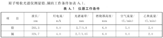 特征濃度:在與測量溶液的基體一致的溶液中,鉛的特征濃度應(yīng)不大于0.12µg/mL,銅的特征濃度應(yīng)不大于0.03µg/mL。