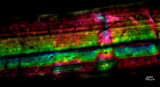 自然光經(jīng)過反射、折射、雙折射及吸收等作用,可得到只在一個方向上振動的光波,這種光波稱為“偏光”或“偏振光”。偏光觀察方式就是利用光的偏振特性對具有雙折射性物質(zhì)進(jìn)行研究鑒定,被廣泛地應(yīng)用在礦物、化學(xué)、生物學(xué)(如鑒定骨骼、牙齒、膽固醇、神經(jīng)纖維、腫瘤細(xì)胞、橫紋肌和毛發(fā)等)和植物學(xué)等領(lǐng)域。