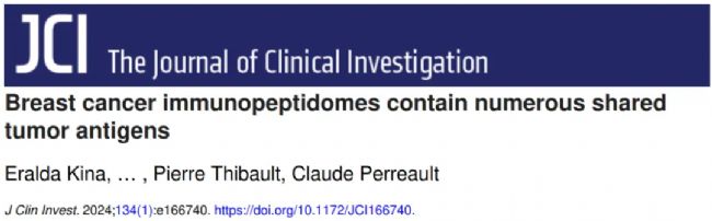2024年1月,加拿大蒙特利爾大學(xué)的Pierre Thibault教授課題組在The Journal of Clinical Investigation上發(fā)表了題為“Breast cancer immunopeptidomes contain numerous