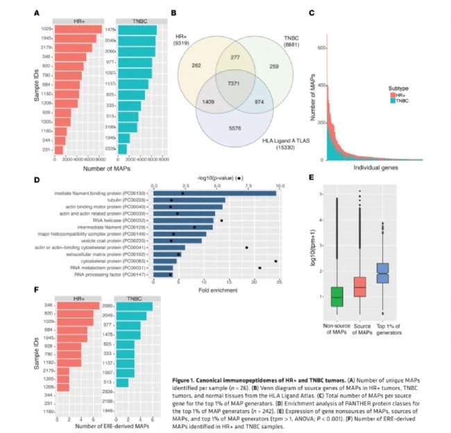 1. HR+和TNBC腫瘤的典型免疫肽組相似