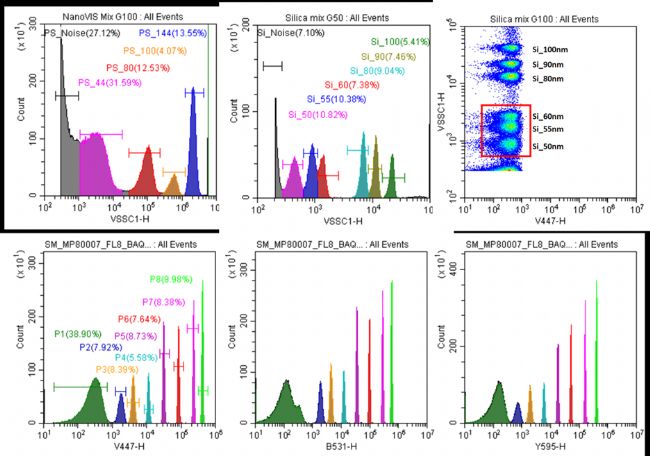 CytoFLEX nano能夠同時(shí)檢測(cè)6 個(gè)熒光通道,提供更加全面和詳細(xì)的EV熒光指紋信息。