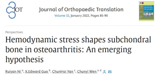 參考文獻(xiàn):Ni R, Guo XE, Yan C, Wen C. Hemodynamic stress shapes subchondral bone in osteoarthritis: An emerging hypothesis. J Orthop Translat. 2021 Dec 30;32:85-90. doi: 10.1016/j.jot.2021.11.007. PMID: 35070712; PMCID: PMC8755519.