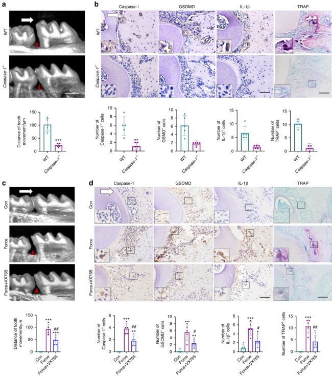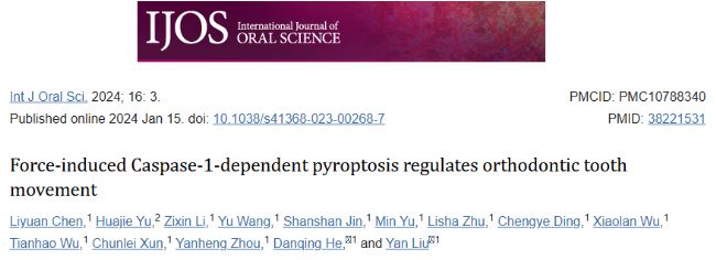 參考文獻:Chen L, Yu H, Li Z, Wang Y, Jin S, Yu M, Zhu L, Ding C, Wu X, Wu T, Xun C, Zhou Y, He D, Liu Y. Force-induced Caspase-1-dependent pyroptosis regulates orthodontic tooth movement. Int J Oral Sci. 2024 Jan 15;16(1):3. doi: 10.1038/s41368-023-00268-7. PMID: 38221531; PMCID: PMC10788340.