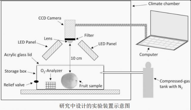 FluorCam葉綠素熒光成像系統(tǒng)不只在植物研究領(lǐng)域應用廣泛,在檢測水果儲存方面也具有相當大的應用潛力。近兩年發(fā)表的兩篇文章便將FluorCam與氣調(diào)技術(shù)結(jié)合設(shè)計了一套果實低氧存儲檢測裝置,來通過葉綠素熒光成像深入研究蘋果低氧脅迫下的熒光動力學變化,探索更優(yōu)的果實存儲方案。