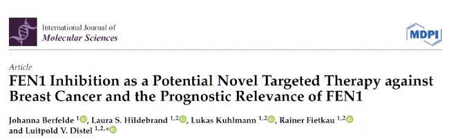 已有研究表明,F(xiàn)lap核酸內(nèi)切酶1(Flap Endonuclease 1,F(xiàn)EN1)參與DNA的損傷修復(fù)和復(fù)制,有效維持基因組穩(wěn)定性。然而,F(xiàn)EN1的過表達(dá)會(huì)引起基因組突變,與多種癌癥的發(fā)展和治療耐受性相關(guān),暗示了FEN1有可能成為新的治療靶點(diǎn);诖耍聡柪矢髮W(xué)的研究團(tuán)隊(duì)采用FEN1抑制劑(FEN1-IN-4)聯(lián)合電離輻射(Ionizing Radiation,IR),對乳腺癌細(xì)胞給藥實(shí)驗(yàn),評估FEN1抑制劑(FEN1-IN-4)作為乳腺癌新型靶向治療方法的有效性。研究成果以“FEN1 Inhibition as a Potential Novel Targeted Therapy against Breast Cancer and the Prognostic Relevance of FEN1”為題于2024年2月發(fā)表在《International Journal of Molecular Sciences》上。