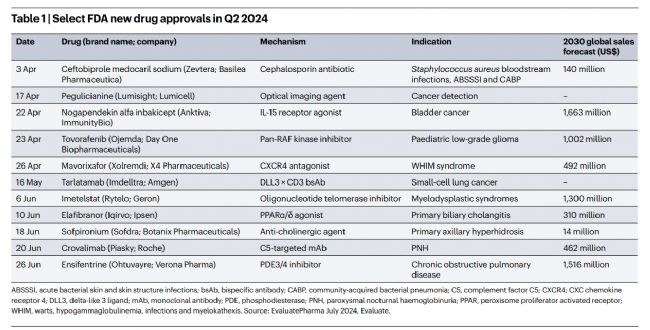 據(jù)統(tǒng)計,本季度FDA批準的新藥中(見表1),