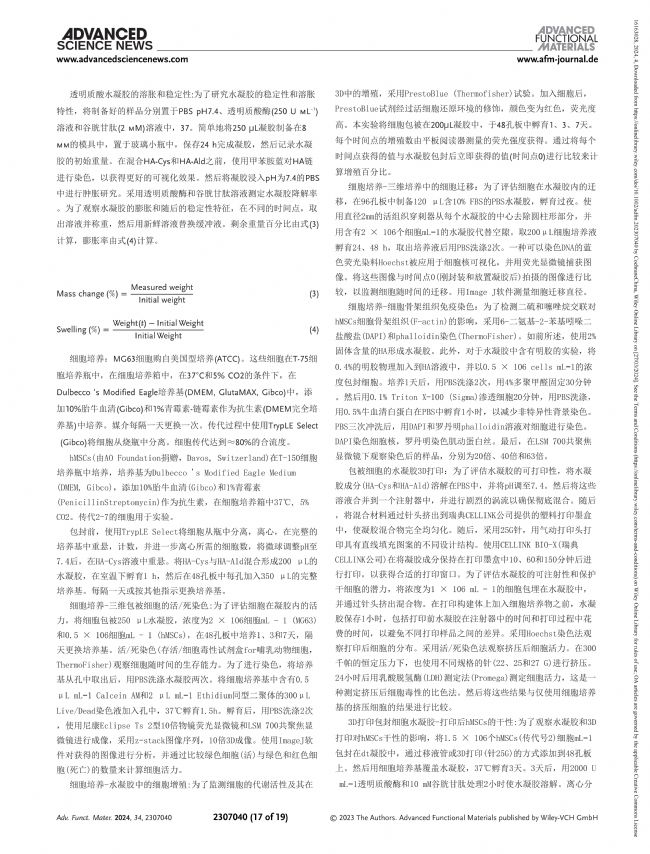 文獻(xiàn)解讀:微調(diào)動(dòng)態(tài)交聯(lián)以增強(qiáng)透明質(zhì)酸水凝膠的3D生物打印能力