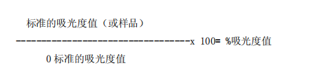 所獲得的標(biāo)準(zhǔn)和樣品吸光度值的平均值除以第一個(gè)標(biāo)準(zhǔn)(0標(biāo)準(zhǔn))的吸光度值再乘以100。因此0標(biāo)準(zhǔn)等于100%并且以百分比給出吸光度值。
