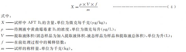 食品中黃曲霉毒素B1的含量計(jì)算: