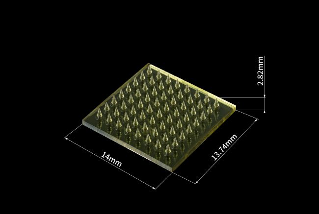 (尺寸:6.69 mm × 3.63 mm × 1.5 mm,針尖4.6 μm;光學(xué)精度:2 μm & 5 μm;材料:CA03)