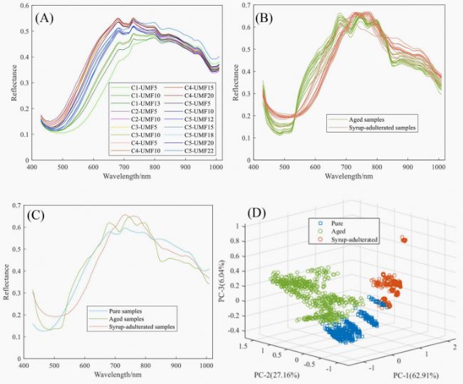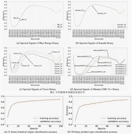 蜂蜜的植物來源鑒定對于保護消費者利益和確保市場公平競爭至關重要。在一項創(chuàng)新研究中,研究人員利用高光譜成像技術,成功區(qū)分了來自11個不同生產(chǎn)商的21種植物來源的56種新西蘭蜂蜜產(chǎn)品。研究中采用了隨機森林(RF)、支持向量機(SVM)、多層感知器(MLP)和卷積神經(jīng)網(wǎng)絡(CNN)四種算法進行分類。結(jié)果顯示,RF和SVM算法分別實現(xiàn)了98%和99%以上的準確率,有效區(qū)分了不同植物來源的蜂蜜。此外,研究還發(fā)現(xiàn),即使標簽相同,不同品牌的蜂蜜產(chǎn)品在光譜特征上也存在顯著差異。