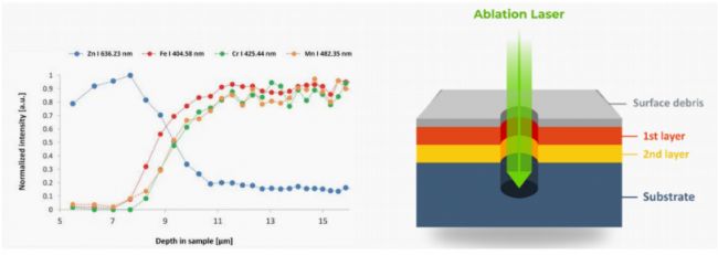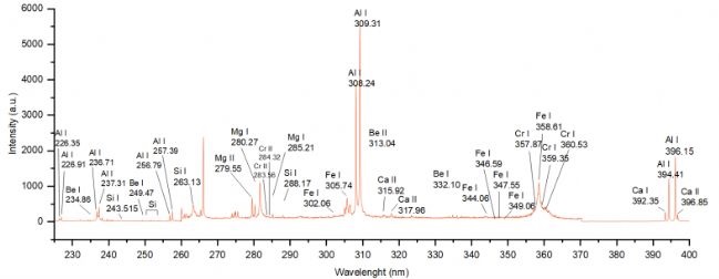 利用脈沖激光在待測樣品表面激發(fā)產(chǎn)生等離子體,通過等離子體發(fā)射的光譜波長和強度信息,分別獲得待測元素的種類和含量信息。