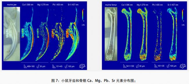 對硬組織(牙齒和骨骼)的分析是考古學(xué)、人類學(xué)、法醫(yī)分析和醫(yī)學(xué)應(yīng)用等許多領(lǐng)域的重要組成部分。這些分析的結(jié)果可以提供有關(guān)個體的年齡、性別、健康、飲食、起源地和遷移等信息。可以通過多種分析方法獲得這些信息,例如 LIBS技術(shù)。上圖即為FireFly獲取的小鼠牙齒和骨骼Ca、Mg、Pb、Sr元素分布圖。