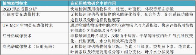 在藥用植物表型研究中,最常用到的植物表型相關(guān)研究技術(shù)請(qǐng)見下表: