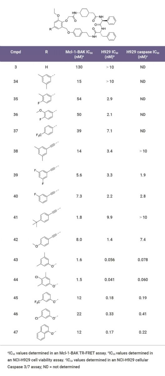 Mcl-1 的抑制需要阻斷蛋白-蛋白相互作用,這通常需要相對(duì)比較大,結(jié)構(gòu)復(fù)雜的(半) 肽類化合物來(lái)實(shí)現(xiàn)。