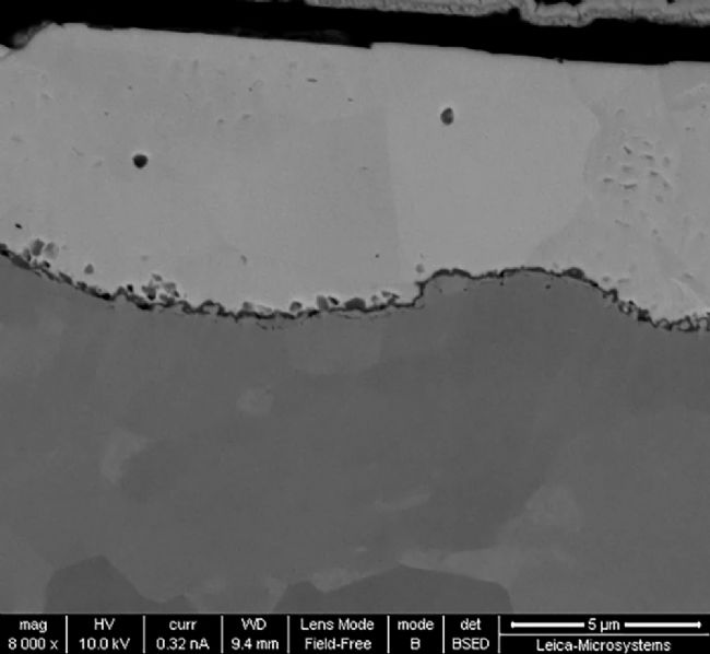 與鋼材基底相比,鋅鍍層相對(duì)較軟,在機(jī)械拋光時(shí)會(huì)嵌入雜質(zhì)。離子研磨工藝是一種用于分析鍍鋅鋼上鋅層的厚度的技術(shù)手段。通過使用EM TIC 3X制備樣品,可觀察到一個(gè)干凈的蝕刻表面。鋅層沒有偽影,晶粒結(jié)構(gòu)以及界面層都清晰可見。