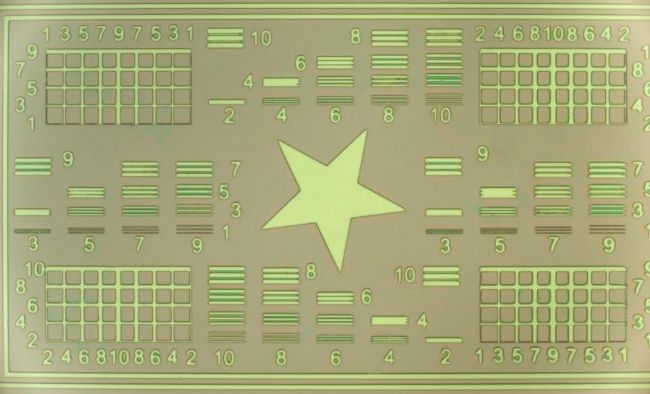 曝光時(shí)間過(guò)短或者光強(qiáng)過(guò)小,則會(huì)曝光不足,在結(jié)果上表現(xiàn)為顯影后的圖樣為彩色或顯示不完整,如圖1所示;
