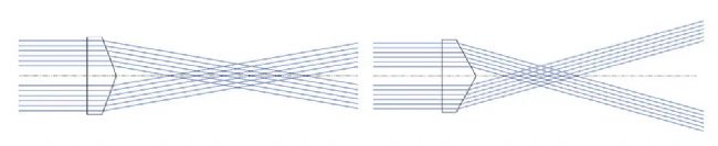 錐透鏡主要用于光束整形和各種激光應(yīng)用領(lǐng)域。其特殊用途還包括產(chǎn)生非衍射貝塞爾樣光束。這里需要注意的是一個(gè)強(qiáng)度分布幾乎恒定的區(qū)域,其長(zhǎng)度由錐透鏡的角度和直徑?jīng)Q定。貝塞爾光束是非衍射光束,非常適合應(yīng)用于醫(yī)學(xué)、研究、測(cè)量技術(shù)和調(diào)整。具體而言,它們可用于光學(xué)鑷子和薄片熒光顯微鏡。結(jié)合其他錐透鏡或透鏡,可產(chǎn)生各種光束輪廓,如準(zhǔn)直環(huán)形光束和可變焦點(diǎn)環(huán)形光束。與激光擴(kuò)束器、透鏡或第二個(gè)錐透鏡相結(jié)合的光學(xué)效果如下所示。